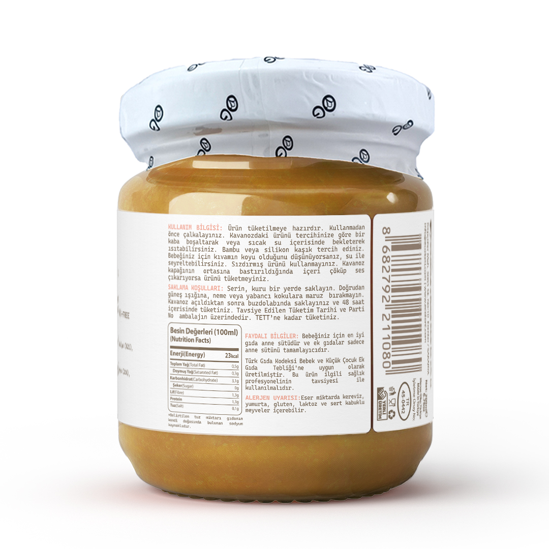 Kullanım Bilgisi: Ürün tüketilmeye hazırdır. Kullanmadan önce çalkalayınız. Kavanozdaki ürünü tercihinize göre bir kaba boşaltarak veya sıcak su içerisinde bekleterek ısıtabilirsiniz. Tahta veya silikon kaşık tercih ediniz. Bebeğiniz için kıvamının koyu olduğunu düşünüyorsanız, su ile seyreltebilirsiniz.